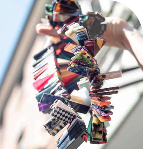 Bei der Produktion unserer Brillen kommt einiges an Acetat-Resten zusammen. Mit diesen wertvollen Ressourcen wollten wir verantwortungsvoller umgehen. Also entstehen daraus einzigartige Brillenfassungen aus 100% recyceltem Acetat. Ein Kreis, der sich schliesst und ein Zeichen gegen Ressourcenverschwendung und für den unverwechselbaren Look eines jeden Menschen. Nachhaltigkeit und Design gehen Hand in Hand. Echte Unikate mit einem eigenen Charakter.